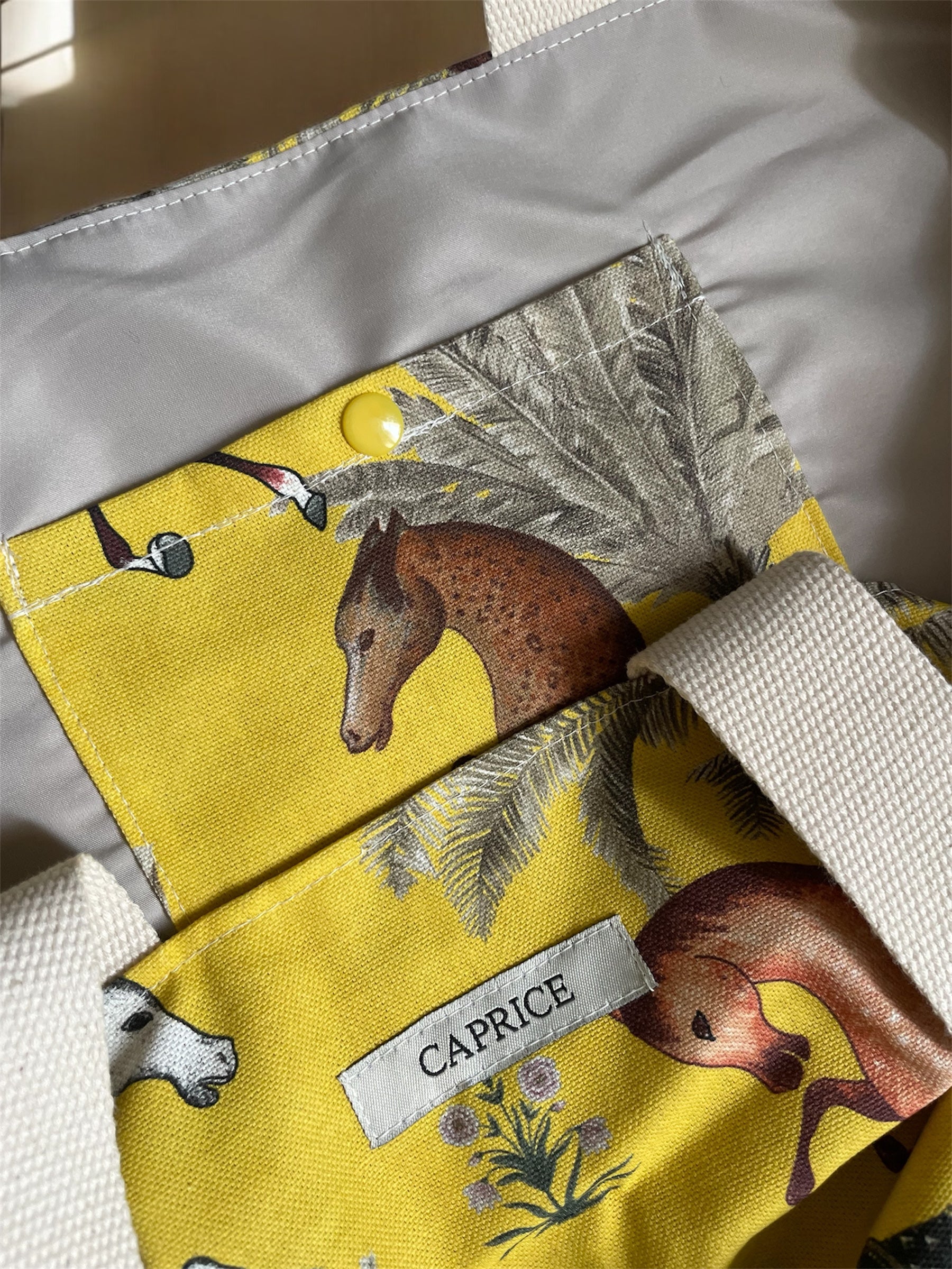 Sac cabas doublé à hanses avec poche plaquée à bouton pression intérieure.